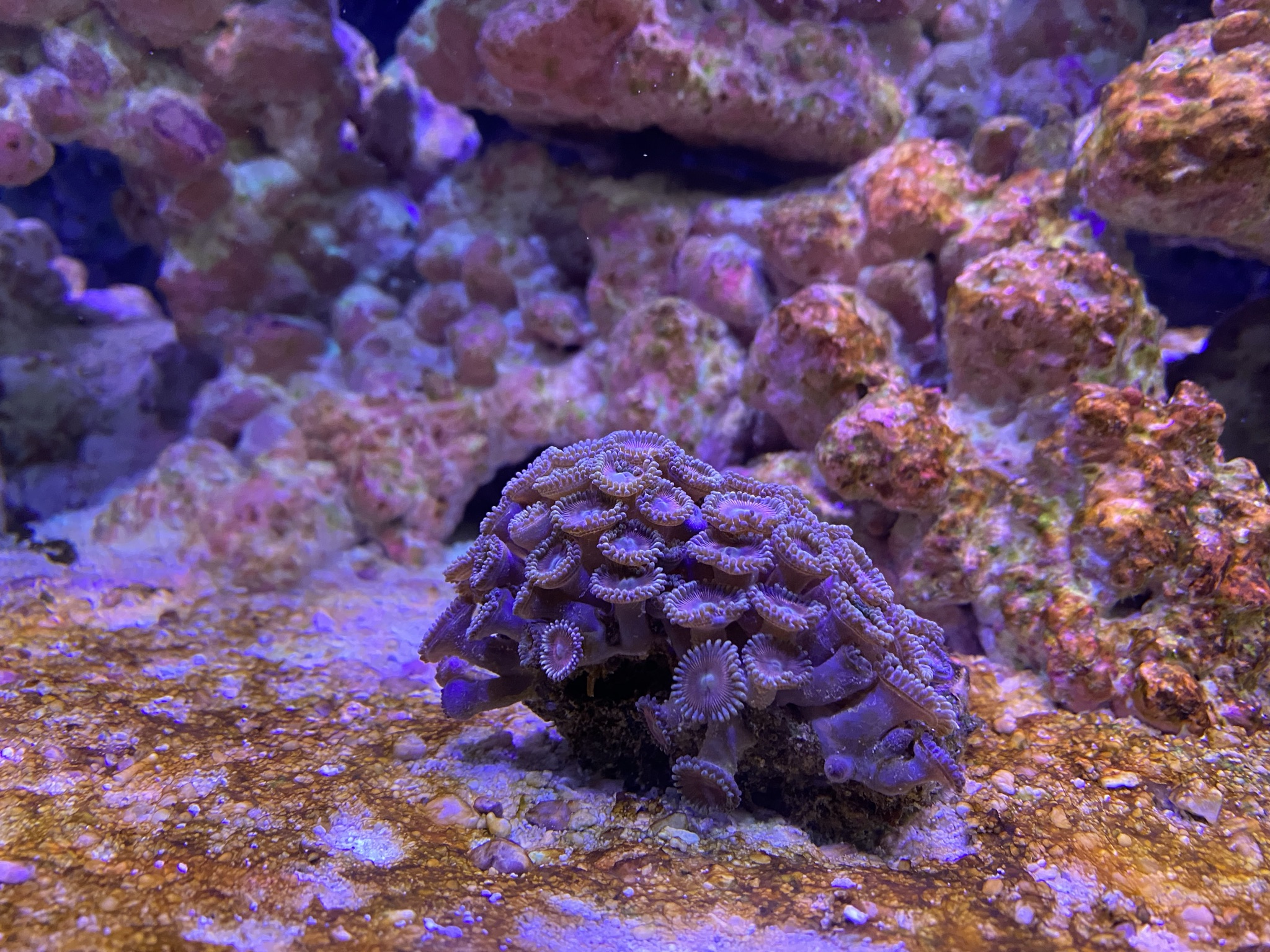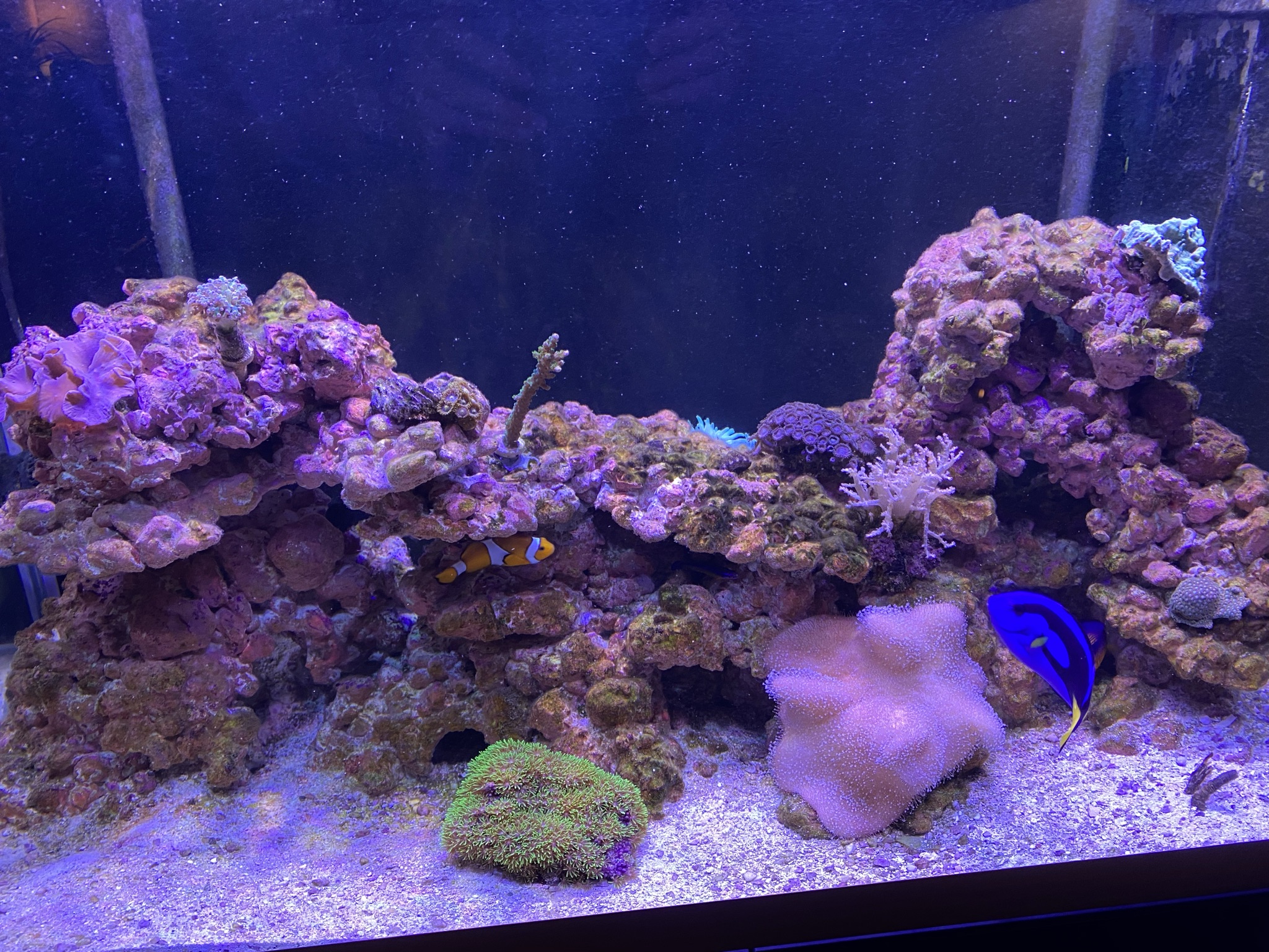 Samtidig har vi et aktivt Allard klovnfiske par som graver i sandet, så der kommer sand ud over det hele. Skal man fjerne det forreste sand? Men det er også sjovt at de har lagt æg en gang.