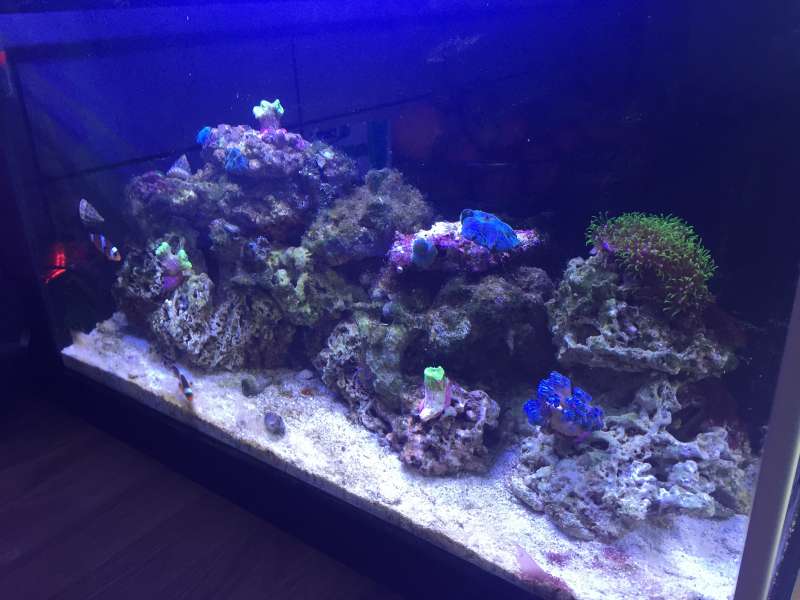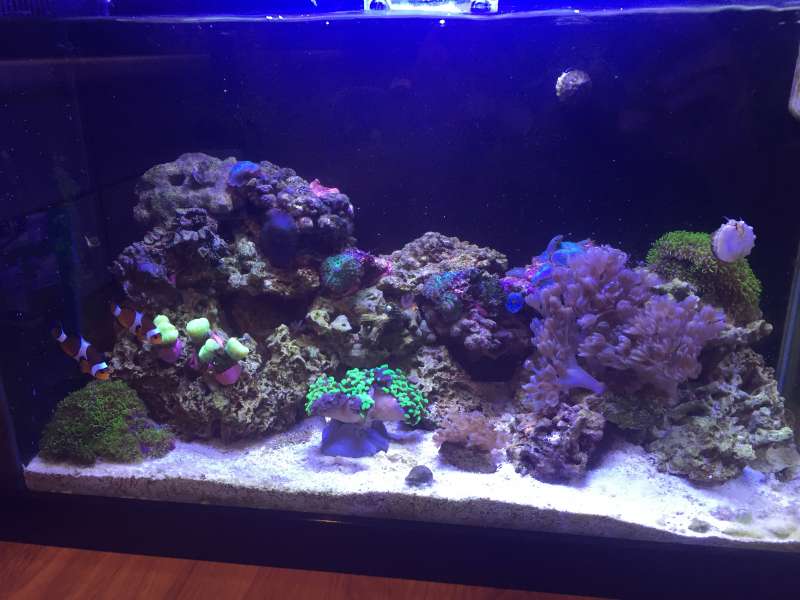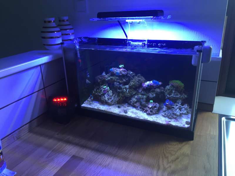 Den lille balje har kørt siden Maj og er nu begyndt at se bedre og bedre ud. Havde et gigantisk algeboom som det tog noget tid at slå ned og de LS jeg havde købt var der ikke så meget liv i som jeg havde håbet desværre