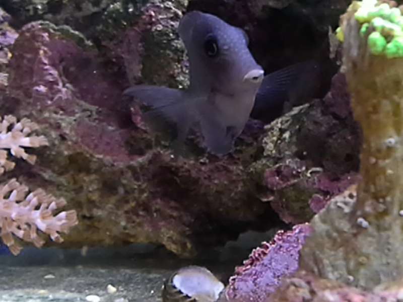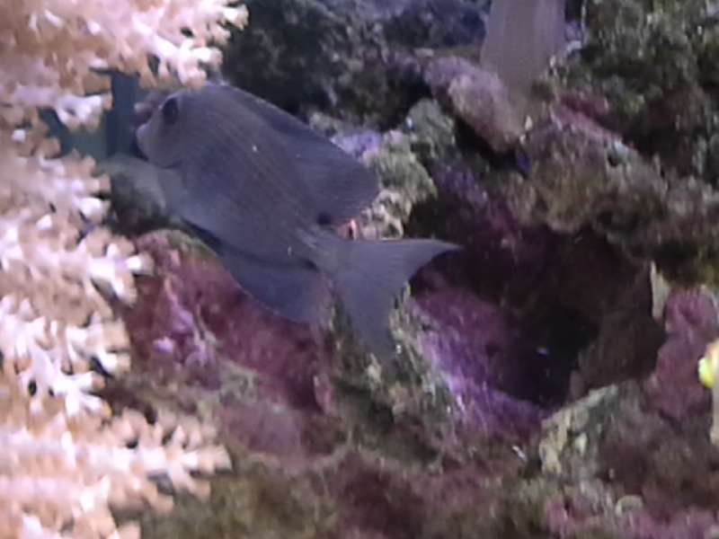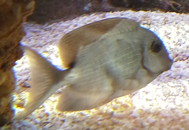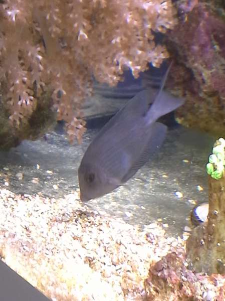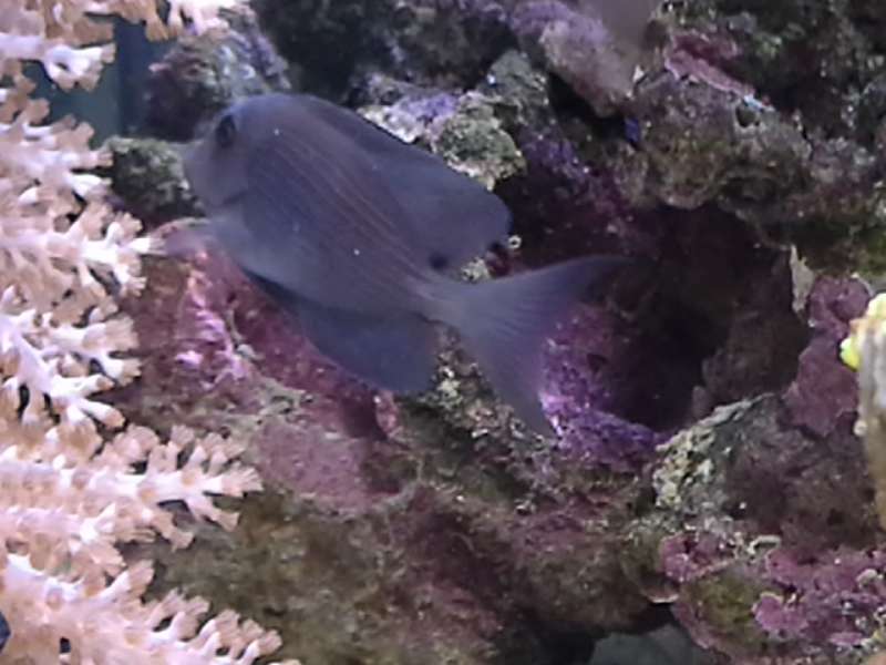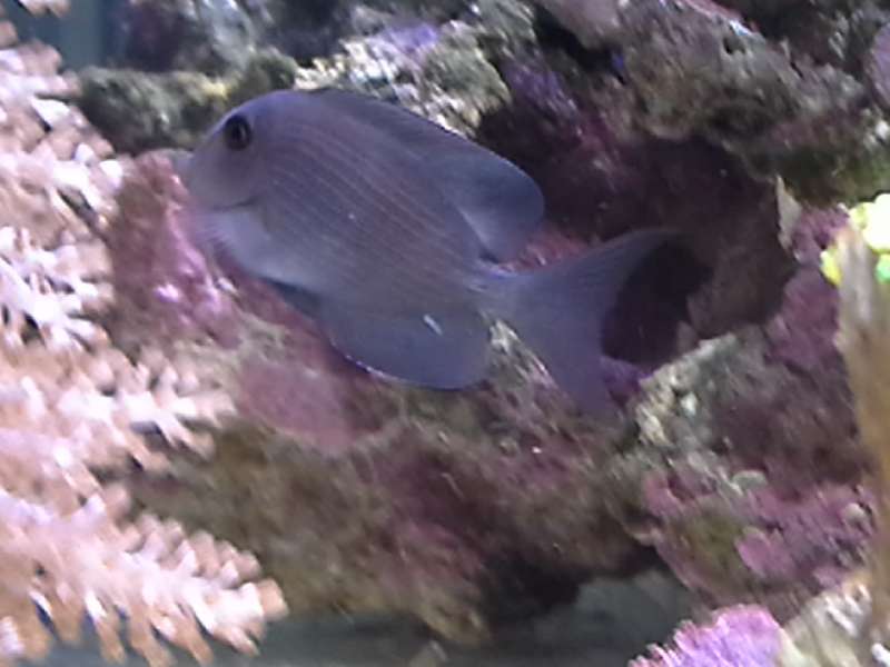 Den har lyrie formet hale, plet hvor rygfinnen ender (mørk) , "bristletooth" og "Lines fra Bryggen Læber" små fregner i hovedet og de vandrette striber, der pt er lidt lysere end resten af kroppen, Farven er sgu svær at definerer...... "støvet lysseblå/lavendel - agtig" ind til videre.