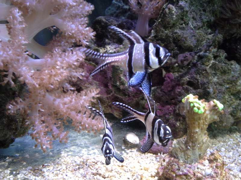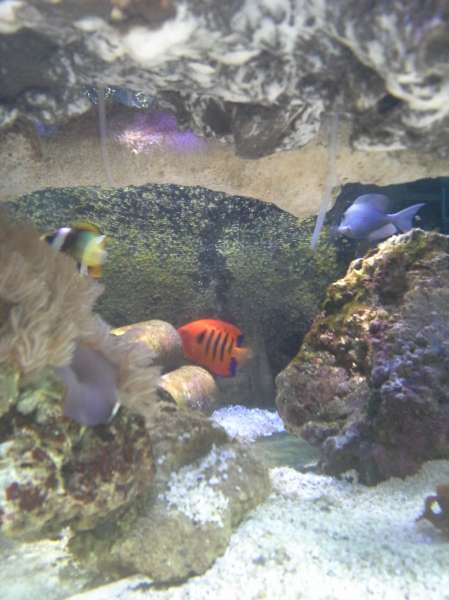 Jeg må sige at jeg nyder den indretning jeg fik lavet med den store "døde Table top koral" midt i baljen, i det lyset er meget svingende i intensitet og jeg tror også dyrene nyder det MAX, de svømmer ofte lige ind i skyggen og står under pladen og stener lidt, inden de så igen svømmer ud i det mere åbne og fouragerer. Det giver også dynamik og en god dybde. + MASSER af plads til lyskrævende SPS når indkøringen er helt ovre
