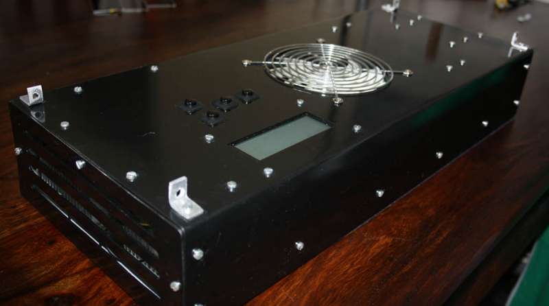 I lampen er der placeret et 4x20 linjers display og fire knapper til at navigere rund i menuen og ændre indstillingerne. En 120mm blæser sørger for køling af de CPU kølerprofiler, LED'erne er monteret på.
