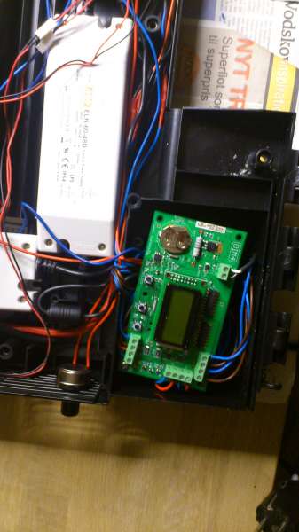Dette print styrer hele lampen det vil sige den styrer alle led dioder blæsere og natbelysning kan justere mine led i lysstyrke på 3 seperate kanaler 1 hvid 1 blå og 1 med de sidste blandede farver den sidste kanal bruges til natbelysning som også kan justeres derud over er der sol op /nedgang på alle 4 kanaler.