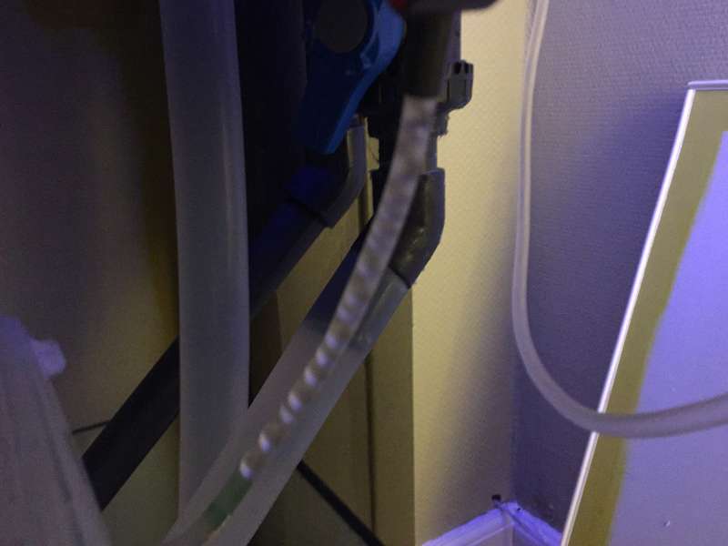 Jeg har limet slangen fast med silikone, så er der ligesom styr på den inde i spanden.