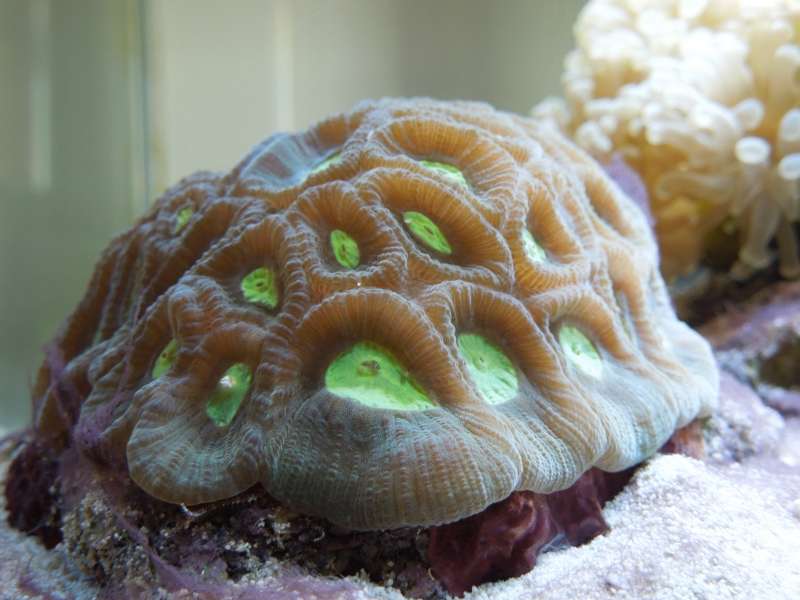 Sidst men ikke mindst er der kommet et par koraller til, en Ricordea og en Zooanthus. Sidstnævnte er allerede igang med lave nye polyphoveder, så den må også trives i de 25.000 ml :y