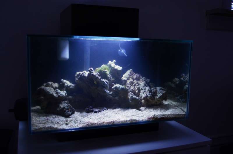 Jeg har købt akvariet brugt af Bo Steen her fra sitet. Der er tale om den nye version med LED armatur. Bo havde inden jeg købte akvariet, holdt nogle få koraller under det originale lys, tilføjet skummer, cirkulationspumpe, varmelegeme, levende sten og grus. Så det har blot været et plug and play for mig.