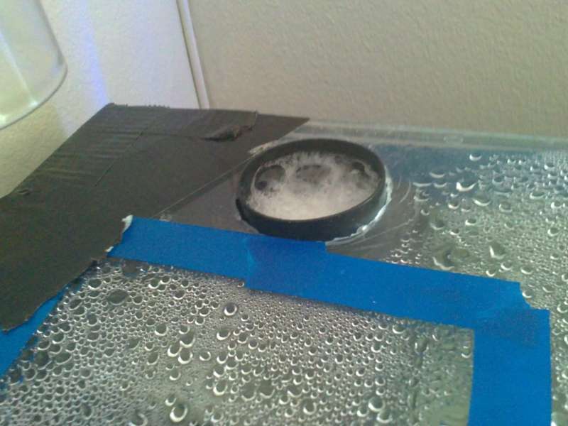 Huller er skåret så kun nødvendige ledninger stikker op, de skal dog have en silikonefuge i kanten, samt noget specialt vandfast sort kraftigt gaffalignende tape hele vejen rundt i kanten.