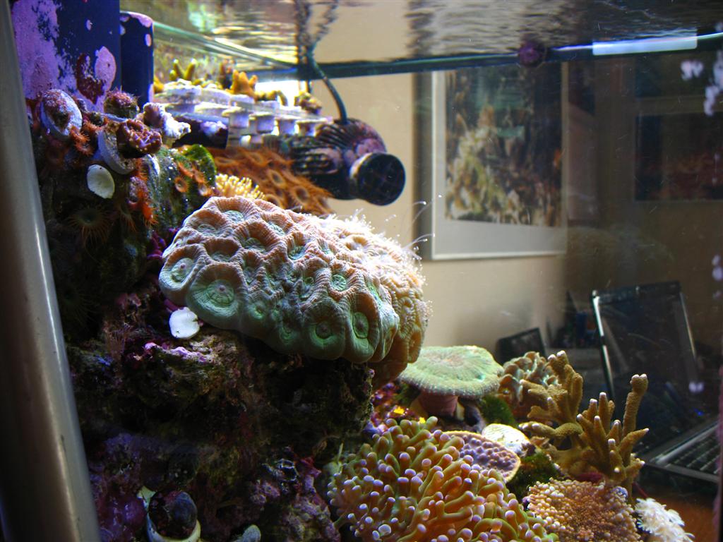 Stenopsætningen er ændret lidt da jeg var nød til, at hive alle stenene op for at få ram på en eunice orm. Jeg var også nød til, at slå to af de store sten i bunden i stykker for at få ram på bæstet. Det foresagede en masse flytte arbejde for at få plads til alle korallerne igen. Syntes dog det ser godt ud igen og venter nu bare på at korallerne vokser sig til på de nye pladser. Ormen har en hel del invertbarter samt et par fisk på samvittigheden så var dejligt endelig at komme af med den!