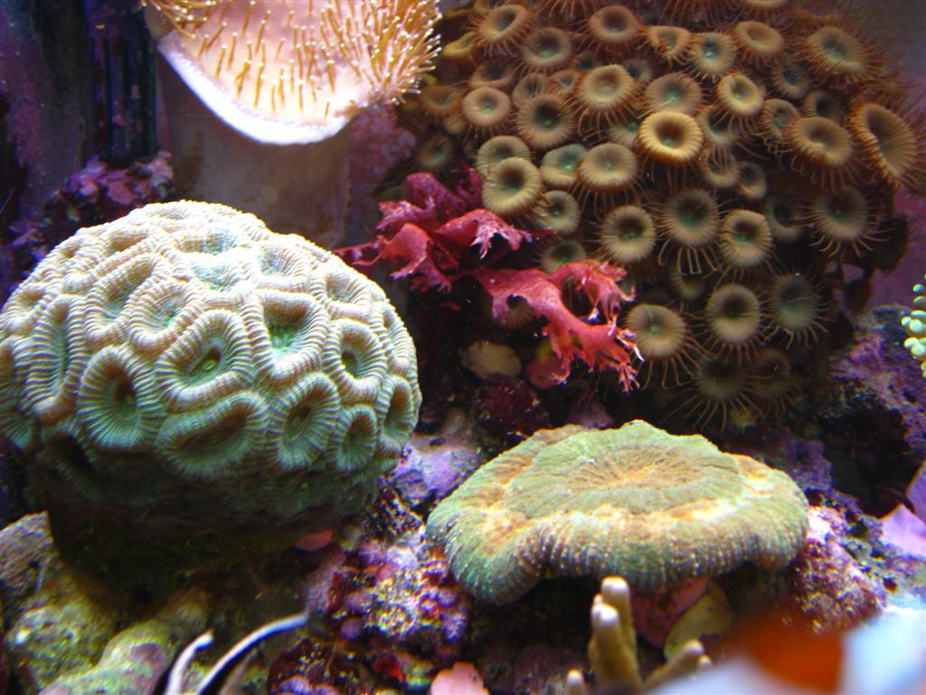 Har haft store problemer med en rød algeart (ikke cyano) der har "ædt" næsten en hel koloni caulastra og i den grad nedsat væksten hos adskillige af mine andre koraller (+ så heller ikke godt ud). Algen var ikke til at bekæmpe, trods nitrat og phosphat var umåeligt i akvariet (testet med forskellige testsæts).
