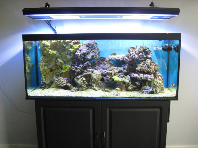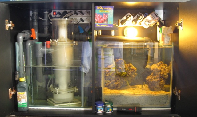 Sumpen er på 120 liter, hvoraf refugium er 54 liter.