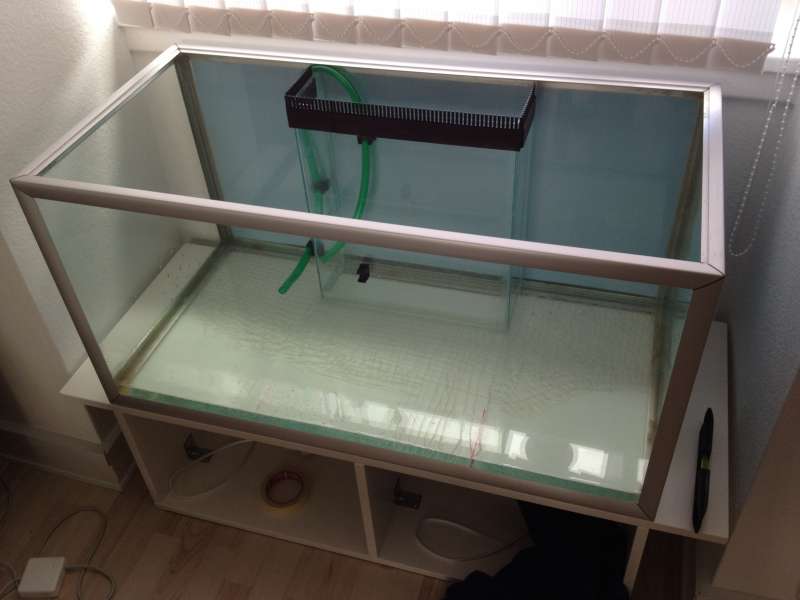Midt for på baggrunden har jeg lavet en intern sump med målene 40x15x47 (B x D x H), hvori skummer, varmelegeme og returpumpe står.