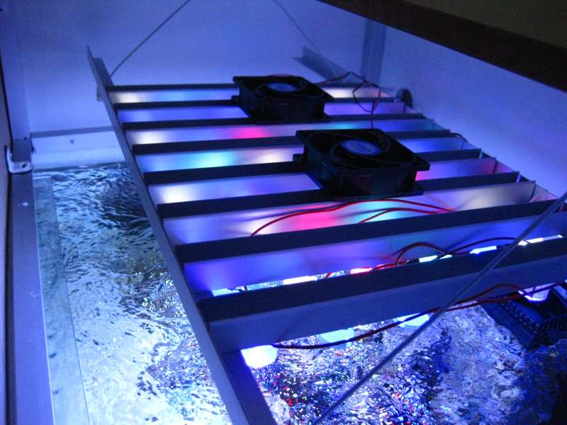 DIY led, DIM4 controller, DIY bord/lampe kasse, Skimz 181, Tunze silence 2400, 2 x Jebao WP-25, DIY PO4 filter