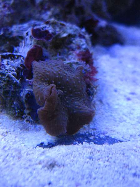har fået lidt koraller i, bla. caulastrea mint og nogle blå stylopora frags, en alvepora og en grøn plade koral, som jeg ikke ved hvad hedder. Nogen der kender den?