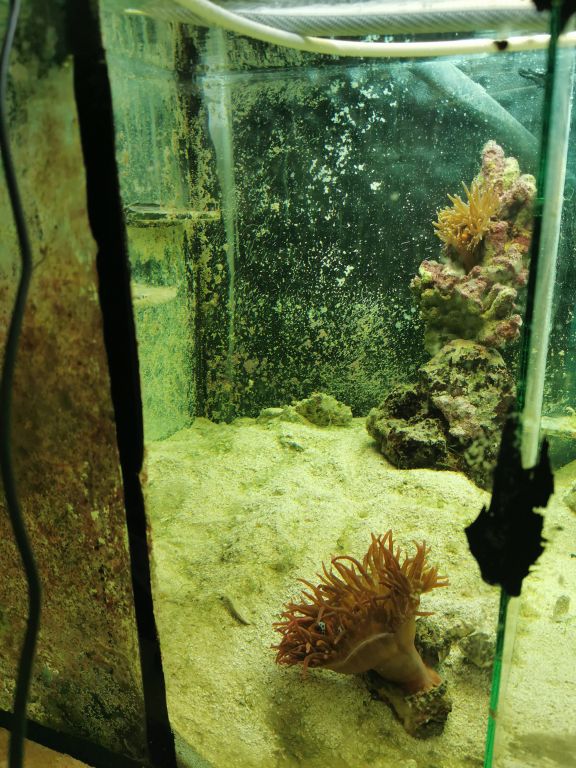 I Anemoneakvariet tænker jeg bygge en baggrund i levende sten, det skal være sten der ikke er tykke og med masser af store huller så det bliver nok ikke helt let at finde, den sten anemonen sidder på bagerst i akvariet er perfekt. Der kommer i lidt carpet anemoner også, og så fundere jeg på om MINI-MAXI skulle blive brændt af anemonerne?