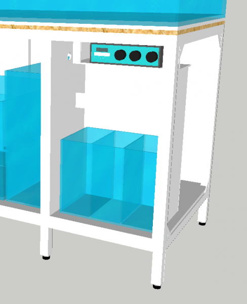 Skal beklædes med 4styks 40x80cm og 2 styks 60x80cm køkkenlåger fra ikea, de vil cirka dække 25mm af bunden af display tanken så man ikke kommer til at se den nederste samling.