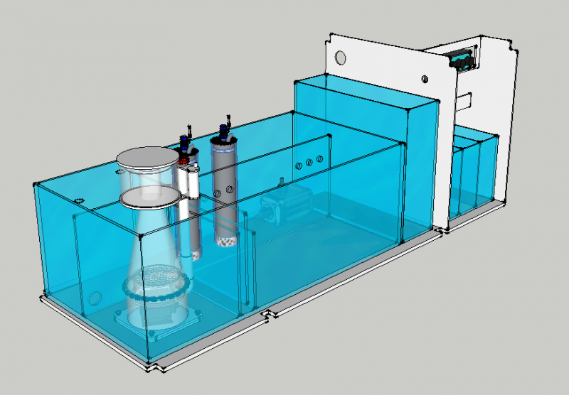 Har prøvet at samle så meget info som man kan uden at blive alt for rundforvirret, og med hjælp fra google sketchup har jeg tegnet i utrolig mange timer for at komme hen til et resultat jeg er godt tilfreds med. Har prøvet at sætte så meget fokus på anvendelighed som muligt, men på samme tid skal pladsen udnyttes optimalt, for at få så meget vand volumen som muligt. Syntes jeg er kommet frem til et rimelig godt resultat hvor de fleste ting skulle være til at komme til og grundelementerne er så optimale som muligt. Så må ting som udstyret være af en lidt billigere kvalitet som kan skiftes ud senere hen.