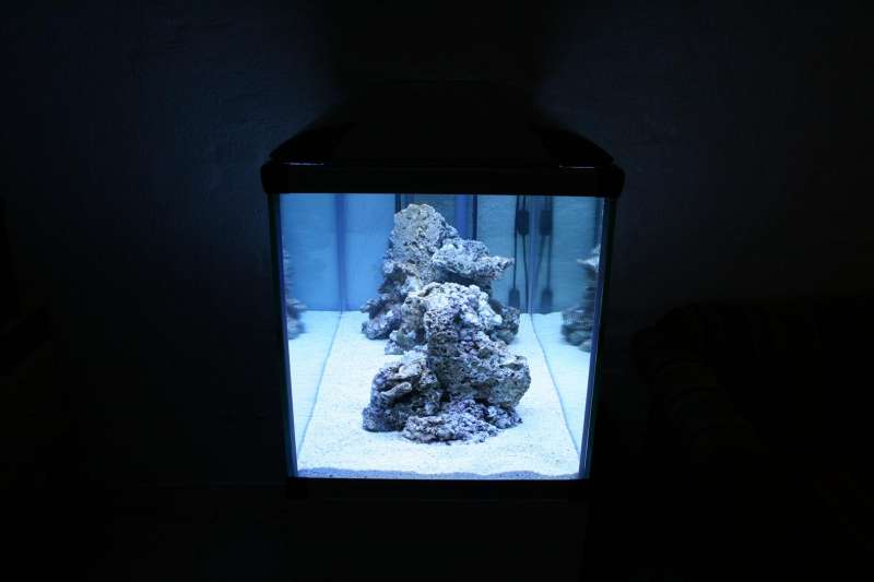 Jeg startede akvariet op i fredags den 2 sep. mine planer for akvariet er, at der primært skal LPS og SPS koraler i, og selvfølgelig den klassiske klovnfisk, lidt kirugfisk og så må jeg ellers med tiden se om jeg vil have andre fisk i, men nu skal det ihvertfald have lov til at stå og køre ind. så nu er det bare den satans ventetid jeg skal over