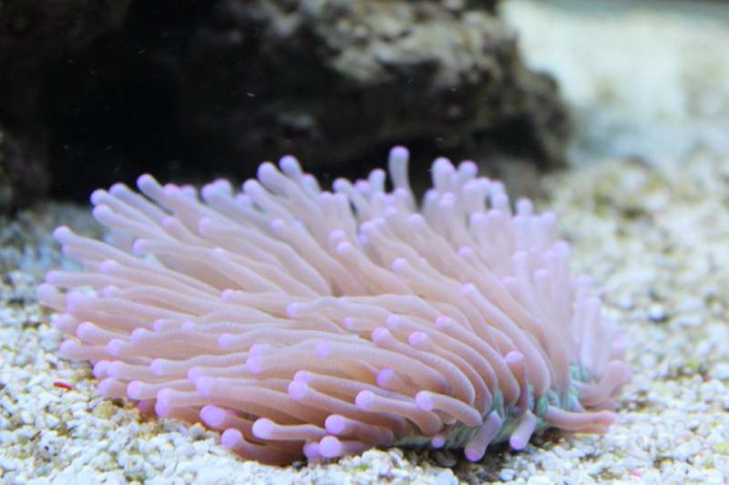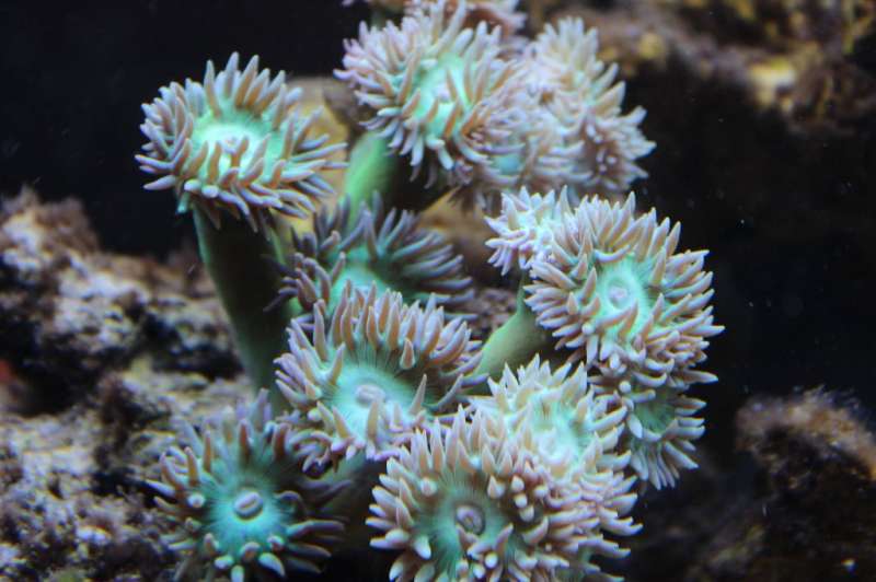 1 Acropora sp. (lysegrøn i bunden og bliver lyserød i toppen)