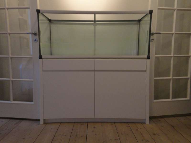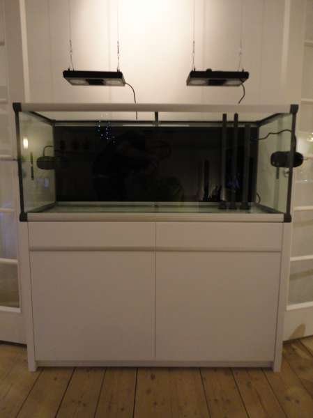 Ang. valg af akvarie har jeg faktisk haft meget lidt at skulle have sagt. Konen vil IKKE have et grimt møbel i sort eller andre usle farve som hun siger det, i sit hjem. Derfor faldt valget på Akvastabil's nye Mark 2 serie. Mere præcist en 360L => 130x50x55cm.