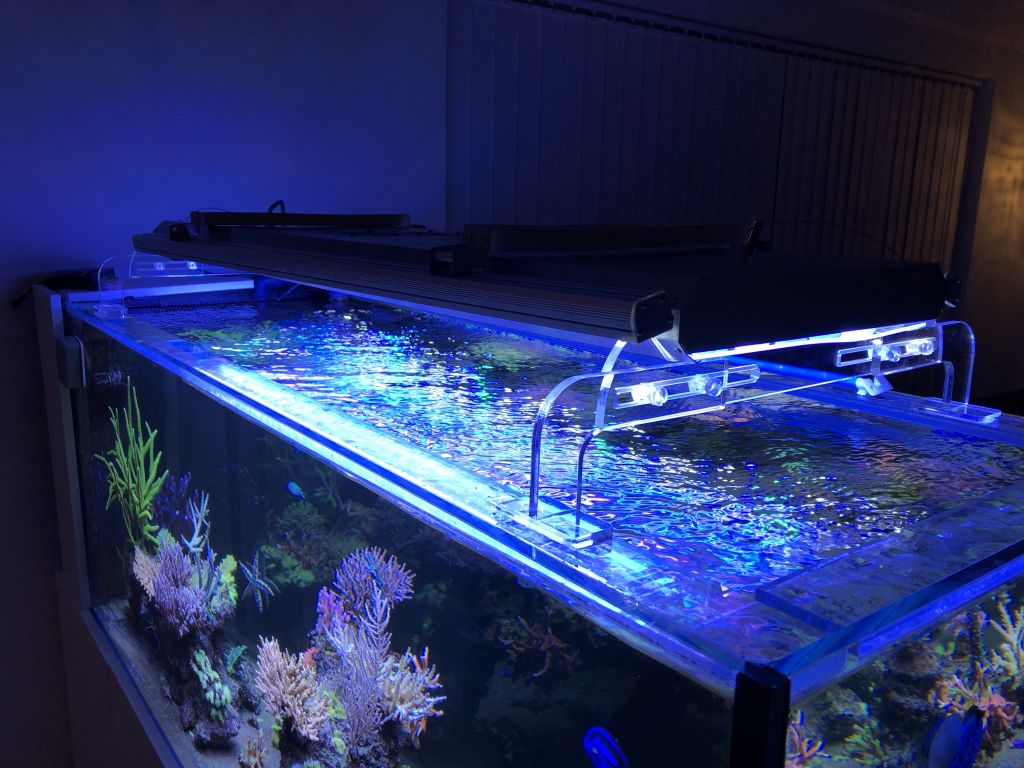 Lige nu køre akklimatiseringsprogrammet hvor man går fra T5 til led. Ingen anelse om hvordan det fungerer, men det ser ud til at virke da der er fuld PE på alle koraller.