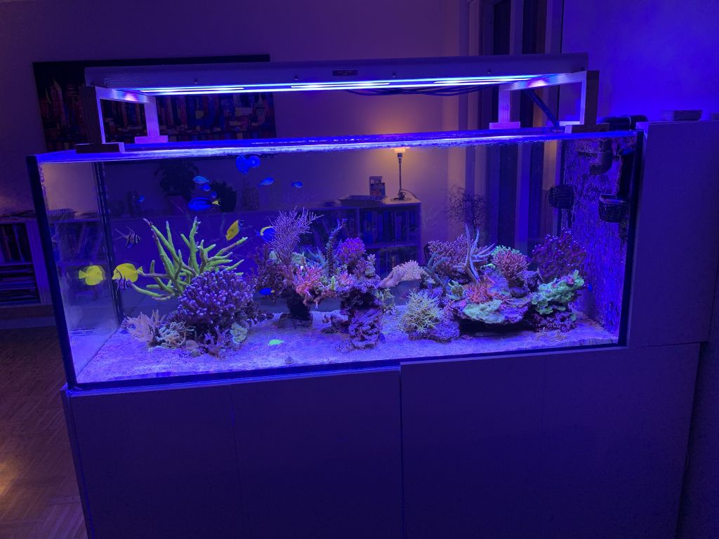 Og INDEN jeg skrev det med at sætte sig på hænderne har jeg skiftet lys (SÅ DET TÆLLER IKKE CARSTEN, ESBEN OG MARTIN) over akvariet og sat 3 Ecotech Marine 30W gen 3 pro lamper over. De sidder 10 cm over vandspejlet og kørte på 60% på det der coral+ program de har. Så det kan godt være at, korallerne også er blevet stresset af det i forbindelse med lampe skift. Jeg overvejer lige nu om jeg skal købe en til lampe og vende dem en halv omgang.