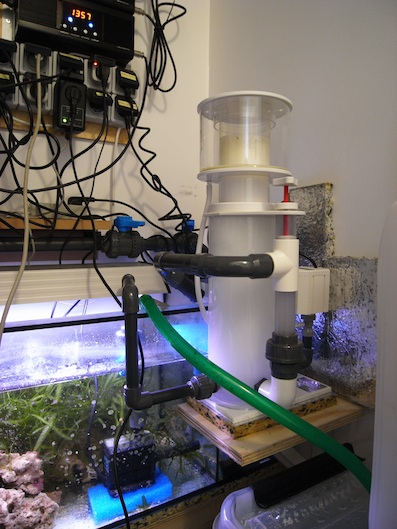Den nye skummer skulle kunne klare et meget belastet akvarium på 800, og et normalt belastet akvarium på 1000 liter. Skummeren bliver født af en AqaBee up 2000/1 som sidder i sumpen. Indstil videre kører den rigtig rigtig fint, og larmer næsten ikke. Jeg har ikke finjusteret den endnu, da den lige skal køres ind først.