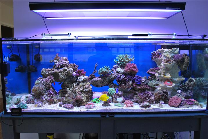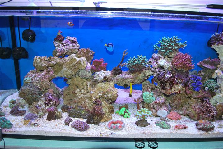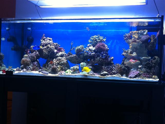 det hele blev færdigt til 1 december, men projektet blev så lidt forsinket da der skulle gulvmand på, så det hele stoppede i 3 dage...men derefter gik det rimeligt som planlagt..koraller og fisk kom i den nye balje fra d 25/ og frem til d 28/12. det eneste jeg har mistet endnu, er en lille tridacna