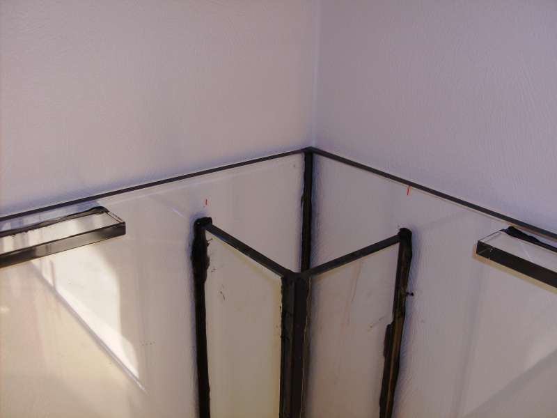 Alt glas til akvariet er 12 mm optiwhite,der er poleret på alle sider,og der hvor de små panorama ruder