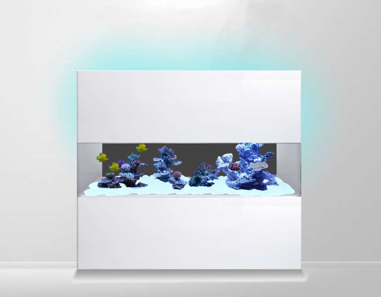 Akvariet skal stå alene op af en hvid væg der er 4.45M lang og 2.60M til loftet.