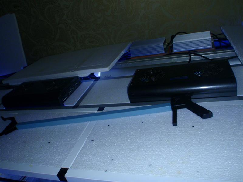 Nej det da ikke så slemtnielsk skrev: Det var så lidt, beklager "ventetiden" - de ligger 10 cm over vandspejlet. Der er 3 x 200 watt PS på 95 % samt 4 x 39 watt T5 aquastabil. Så ca 740 watt over 1920 L - det er til at betale i strøm. Hvad det så koster i vand, salt og tilsætninger er en helt anden sag, host host..