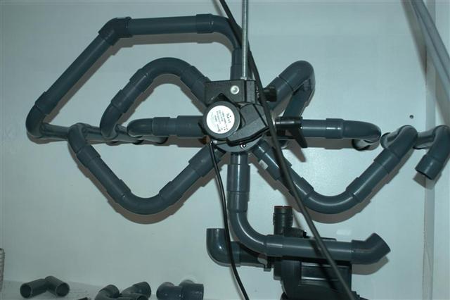 Ocean motion Vandstrømmen i akvariet er lavet af en Ocean Motion 8 arms ”blæksprutte”, som fødes af en Red Dragon 16.000L. Ocean motion ændrer konstant udløbet, således at der over et minut åbnes skiftevis for alle 8 udgange. Dette giver en kraftig cirkulation uden synlige pumper i akvariet. Fordelen ved Ocean Motion er også at det er meget let at servicere pumpen, da den sidder udvendigt (der er kun en pumpe at vedligeholde). Jeg startede først op med en 16.000. laguna pumpe men den larmede meget så derfor blev den skiftet ud med en Red dragon som er identisk bortset fra foden som gør at den larmer mindre.