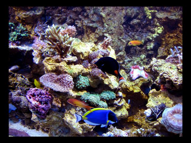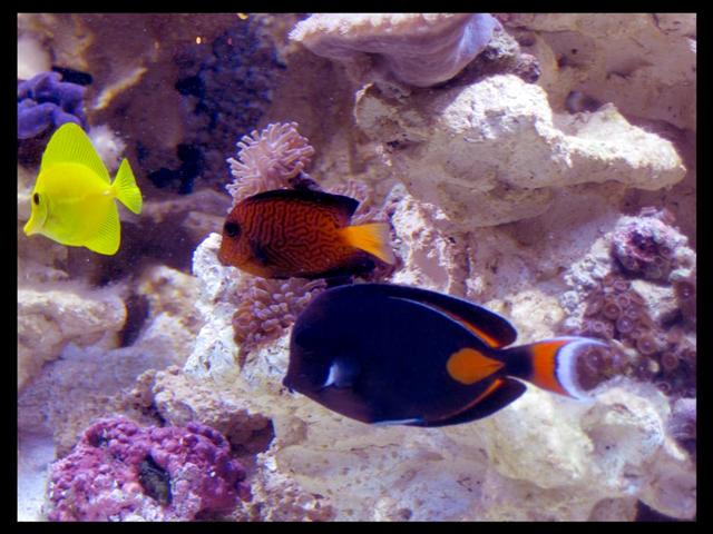 AndersNT: Fisk og koraller kom i, i slutningen af algefasen, og der har ikke været nogen problemer endnu. Alle algerne er væk, så nu mangler der bare at komme lidt kalkalger. Grunden til at alle fiskene kom i på en gang, var at jeg var bange for at kirurgerne ellers ville komme lidt op at toppes. På denne måde var der ingen problemer.