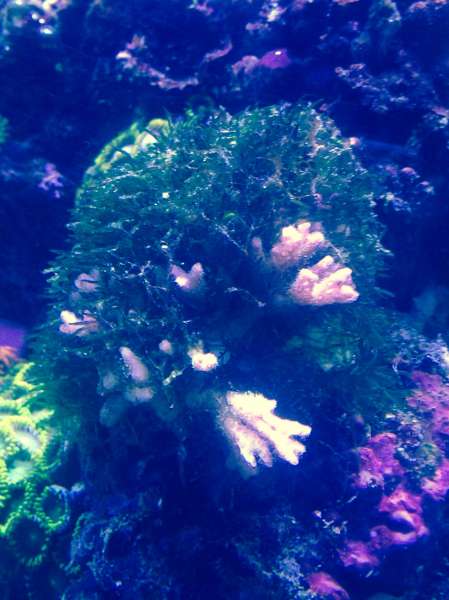 Hejsa... Er lige kommet hjem fra juleferie og har opdaget denne alge... Den har overtaget lidt en af vores koraller. nogen der kan svare på hvad det er for en? Synes ikke det virker til at kirurg fiskene vil røre den..