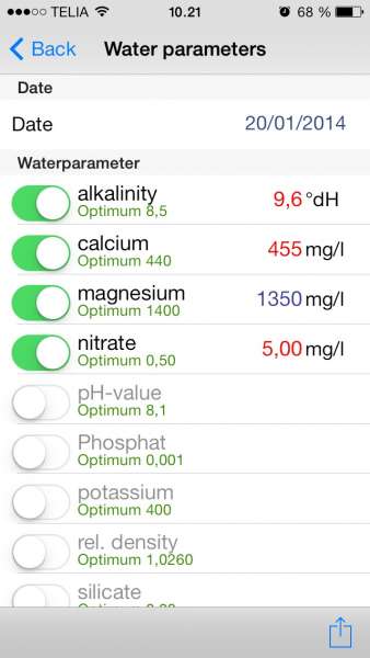 Jeg havde inden jeg begyndte at dosere sango nitrat på ml 1- 2 pg en po4 på 0. Nu er no3 på ca 2.5 -3 stk g po4 på 0.02/3 stk. De 2 sidste sps koraller jeg havde lever stadigvæk .....jubiii