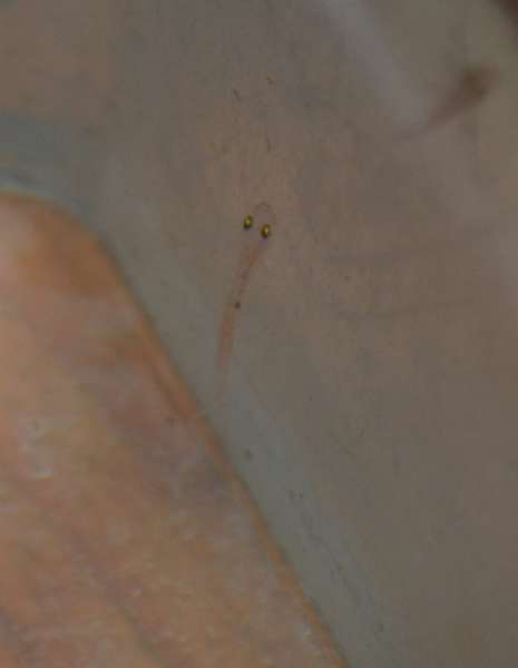Så i dag kigger jeg ned i baljen og ser 2 stk som stadig er larver, og til min store overraskelse er der 2 stk som er metaforis, så nu svømmer der 2 stk lilla fridmani rundt som er en tro kopi af de voksne, bare meget mindre.