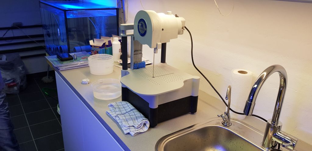 Gryphon bandsaw 42”. Genialt stykke grej hvis man har massive koraller der skal skæres op. Også perfekt til koraller der er svære at klippe uden de springer i alle retninger. Acans, monti-plader mv.