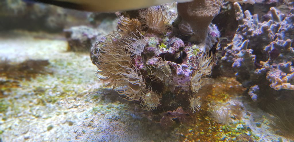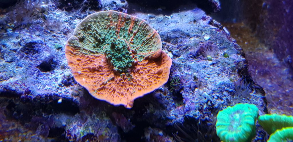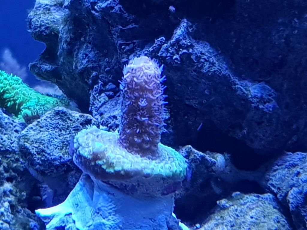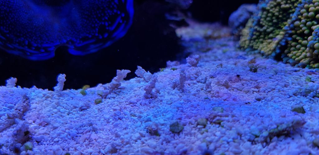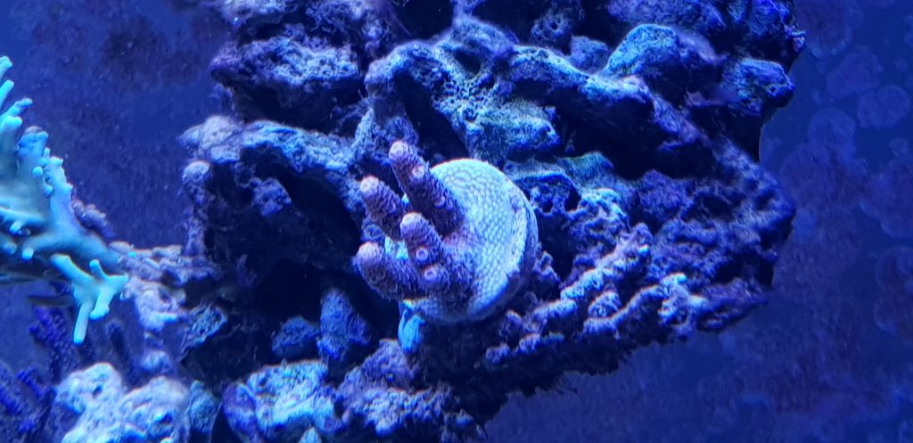 Grafted Montipora capricornis. Jeg er meget begejstret for graftede koraller. Jeg har 4 i forskellige størrelser. Alle er købt i Tyskland. Jeg synes vældig godt om naturens små pudsigheder.