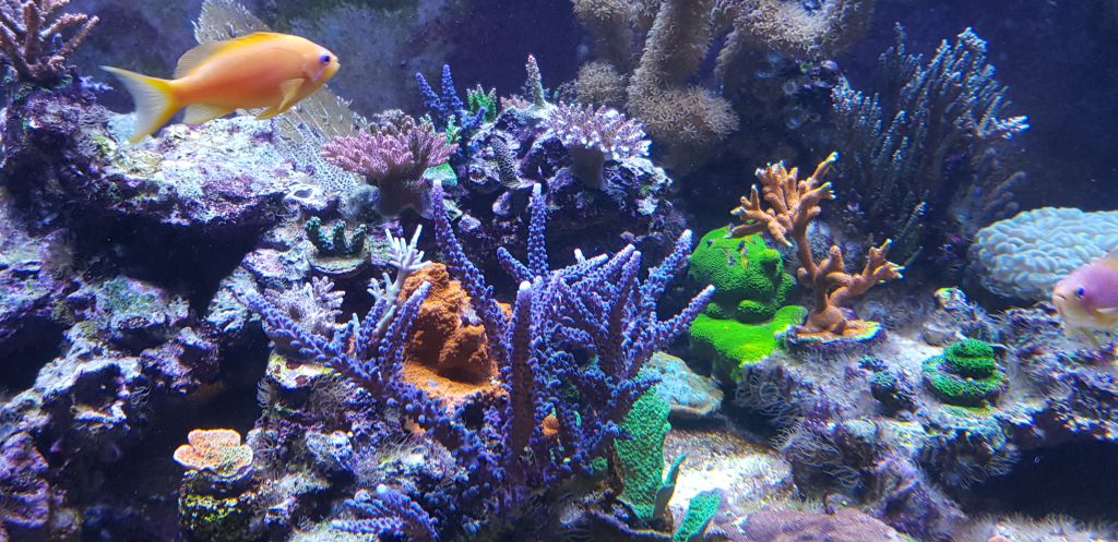 Jeg har tidligere lært, at man ikke kan holde flotte koraller og samtidig have mange store fisk. De skal have noget at leve af og det harmonerer ikke med korallernes krav – det var sikkert rigtigt – dengang. Siden har vi fået bedre grej og en større indsigt i bakteriernes virke og eksporten af næringsstoffer.