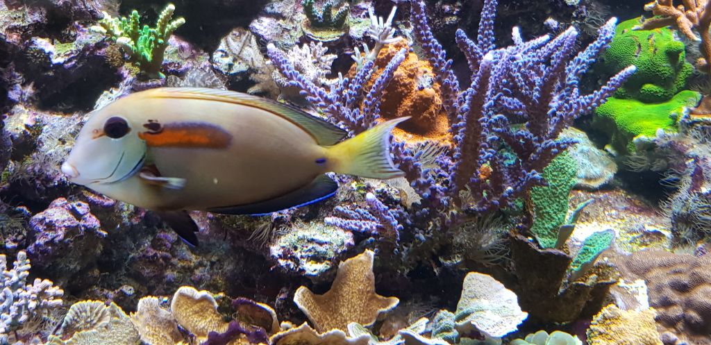 Acanthurus sohal. Jeg købte den af Michael i næstved. Den var blevet for stor til hans 250L. De har ry for at kunne være aggressive. Min opfører sig eksemplarisk, så det er nok individuelt fra fisk til fisk.