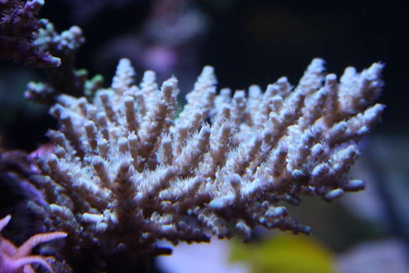 Jeg kan overhovedet ikke fange de rigtige farver, da jeg åbenbart stinker til at tage billeder med kamera. Tager gerne imod tips og tricks til at fange de rigtige farver (har forsøgt at skifte mellem hvidbalancen, men er stadig lang fra virkelighedens farver). Der er også et par billeder af min humilis, som jeg købte for noget tid siden hos Carsten til billige penge, da den var helt brun. Den er vokset godt og er blevet brungullig med svagt grønne polypper og helt lilla spidser. Ville ønske jeg kunne få farverne endnu skarpere, men ved ikke helt om det nogensinde kommer!