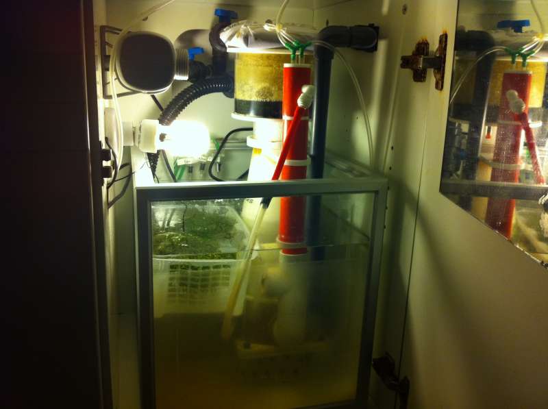 Ellers er der kommet ozon på systemet som jeg er meget glad for - det ryder lige i skummeren. Har lagt en vaskepose med kul ovenpå skummerkoppen og den tager det meste - så nu er det slut med at blive blød i bolden når man roder med teknikken mens den kører