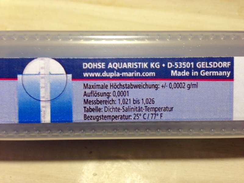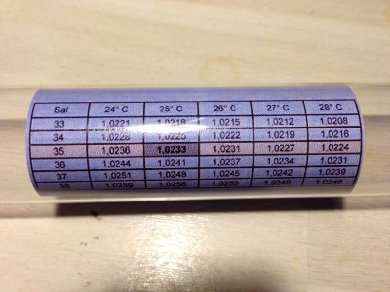 Så fik jeg fået min Dupla måler hjem. Tak Dyne. Den kræver et ret specielt temmelig højt måleglas så målingen er foreløbig men den sagde 1.0233 på skalaen og på 25 grader siger den så PRÆCIS 35 ppt. Så indtil videre er det min ny reference. Min GHL siger stadigvæk ca. 1.023x så nu er jeg vist ved at være der. Lige før jul kommer den kalibreringsvæske hjem og så kan jeg lave den endelige...... Men som trådstarter var inde på, så tror vi at saltet passer. Det gør det så bare ikke for flere inkl. mig selv. Jeg er nu sikkert på at jeg lå omkring 1.021 til 1.022 og ikke omkring 1.025 som jeg var temmelig sikker på.
