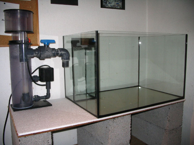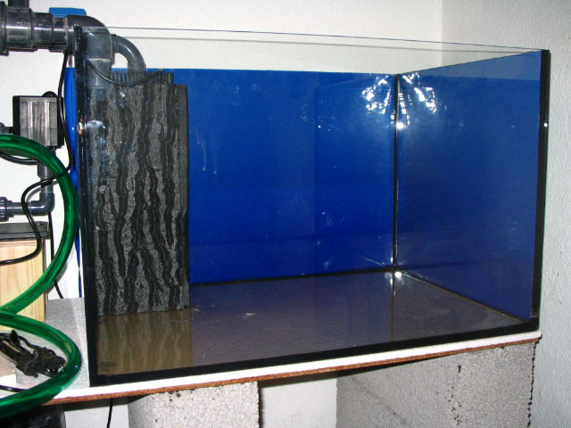 Der vil være et overløb i venstre side hvor skummerens føde pumpe kommer til at stå. Alt overløbs vandet vil så blive afskummet. Retur vandet fra skummeren kommer ud i den anden ende af akvariet.