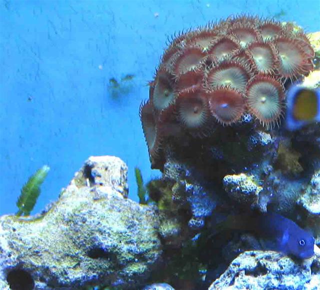 Jeg har ikke så meget teknik endnu. Spandpumpen cirkulerer 1000LT derudover er der et par powerheads, der giver en 1300LT. Af lys er der 2X24w T5 10000 og 20000k. Spandpumpen er fyldt med knuste caridum skaller fra stranden. Jeg sætter en lille skummer til i morgen og håber så at kunne klare mig med det et stykke tid. Vil bygge en plexi kasse med nettag til over løb så hurtigt som muligt.