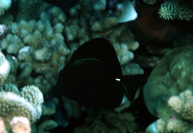 foxtrot skrev: hva er det for en sort kirug med orange læber og hvid kviv på billedet mellen den gule anemone og den dværg kejser med blå læber?