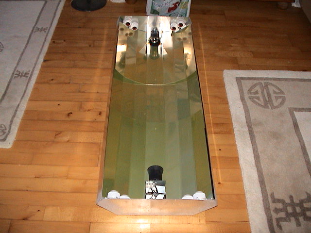den bliver med 4 * 54 w t5 med sunrise på alle fire og 2 * 250 w E40