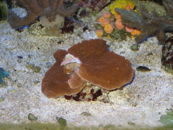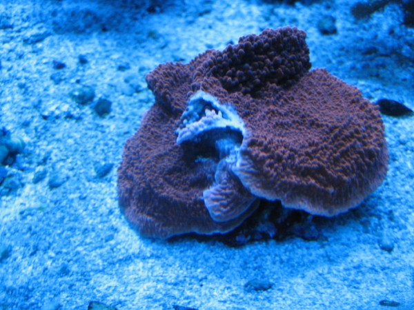Jeg havde en montipora der gjorde nøjagtig det samme, den fik det meget bedre og kom sig helt da den kom op i toppen med mere lys og mere cirkulation