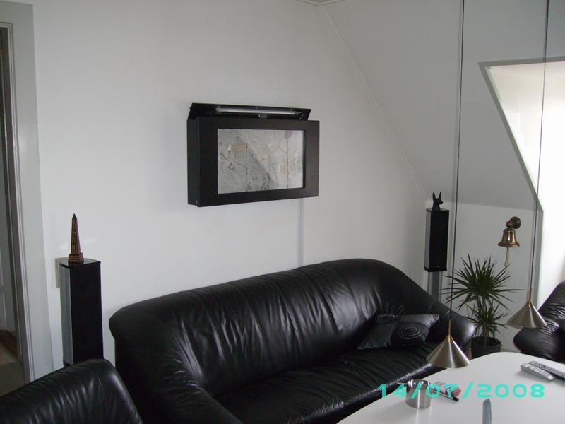 30 liters vægakvarie : købt på auktion i den blå avis - beregnet til ferskvand med bundfilter og rislefilter - disse fjernet. Vand strømmer gennem grov filtersvamp i bunden til kammeret med Symbionit, aktiv kul & polyfiltermåtte og medfølgende pumpe sender vandet tilbage gennem en Hydro Flo som jeg jeg tog fra mit RSM (de er ikke nødvendige der længere). Har så bestilt en Tunze minipumpe jeg vil placere bag venstre side af Back To Nature Slimline baggrunden jeg har fuget nogle små døde "levende" sten på hvor der skal sættes små fragmenter af mindre lyskrævende koraller til det 28 watt rør der fulgte med - også isat en månelampe til blå lys. Akvariet har kontrol til luft (den har jeg lukket), temperaturmåler/legeme og timer til lysstofrøret. Den gamle RSM blæser monteret i låget. Ingen skummer - ingen plads - så vandskift. Så snart Tunzen er monteret kommer der vand i og lidt levende sten (har købt nogle MEGET flade da dybden på akvariet kun er 12 cm :hehe: - 45 cm højt & 85 cm langt). Og der vil også komme en reje eller to og et par MIKRO fisk i det på et tidspunkt. Flere billeder følger også her senere. Glæder mig faktisk meget til at få det igang - ret specielt at have et på væggen syntes jeg :f3: :K