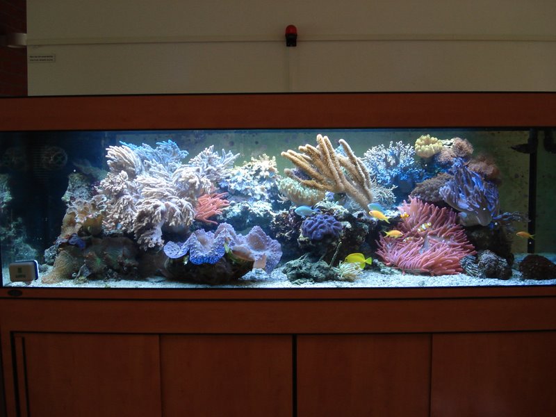 På vej til en konference i Holland i weekenden var jeg lige forbi en god kollega på MPI für Marine Microbiologie i Bremen. Selvfølgelig er det første der møder een i indgangshallen et ganske fint saltvandsakvarium og jeg måtte derfor lige skyde et par billeder (selvom mit kamera ikke er vanvittigt godt...). Det er vist ikke helt skidt at være receptionist der