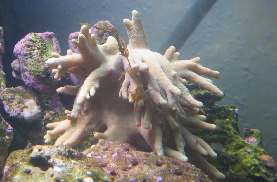 min anemone . billede nr 2. ser ik ud til at fejle noget men har en oplevelse med den jeg er i tvivl om .. for noget tid tilbage købte jeg 2 klovn fisk og satte dem sammen med anemonen i vel viden om at anemoner ik skulle spise dem og ved heller ik om dne har men allerede dagen efter var den først klovn væk... og dagen efter den anden + anemonen var blevet lidt mere buttet. ved at i akvarieforretningen fodrede han den med døde fisk. så kan det være synderen eller ?? kiggede også ihærdig efter fiske lig men fandt ingen tegn. hvad er det evt. for en type anrmone ?