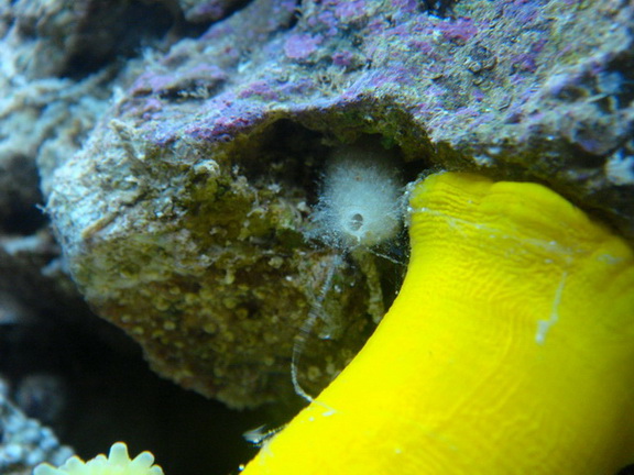 Hvad er den lille hvid der sidder over min søanemone? Billede 3 og 4. Der er et lille hul midt i den. Jeg har et par stykker af dem.